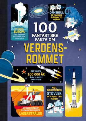 Noter Denne boken er en skattkiste av en faktabok med morsomme illustrasjoner og lettlest tekst. Den inneholder 100 spennende og fascinerende fakta som på en leken og fargerik måte inspirerer til å lære mer om verdensrommet. På hvert oppslag i boken finnes en påstand, for eksempel: